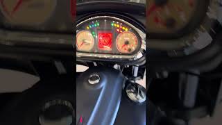 - Fairing mounted instrument cluster featuring electronic speedometer, tachometer, and fuel gauge with odometer, dual tripmeters with distance and time, instantaneous and average fuel economy; fuel range; real-time clock; ambient air temperature; gear position display; front and rear tire pressure; engine hours of operation; engine oil life percentage; average speed; battery voltage; radio information display; vehicle trouble code readout; heated grip level (if heated grips installed); and 15 LED telltale indicators: cruise control enabled, cruise control set, neutral, high beam, turn signal, ABS, check engine, low tire pressure, battery, low fuel, security system, low engine oil pressure and MPH or km/h unit designation