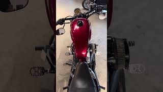 Custom rubber reminiscent of the lead-sled culture. You get a beefy front end with a tall, fat MT90 tire that gives the bike a dominating presence up front and provides a smooth ride and solid handling.