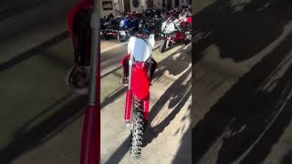 Homologated for racing and available in limited numbers, the CRF450RWE Works Edition includes all the improvements of this year’s CRF450R plus a special hand-ported cylinder head, black DID LT-X rims, exclusive Yoshimura mufflers, titanium nitride-coated lower fork legs and shock shaft, an RK gold chain, special ECU settings, black triple clamps, revalved suspension, a factory-spec gripper seat, and an HRC decal package.